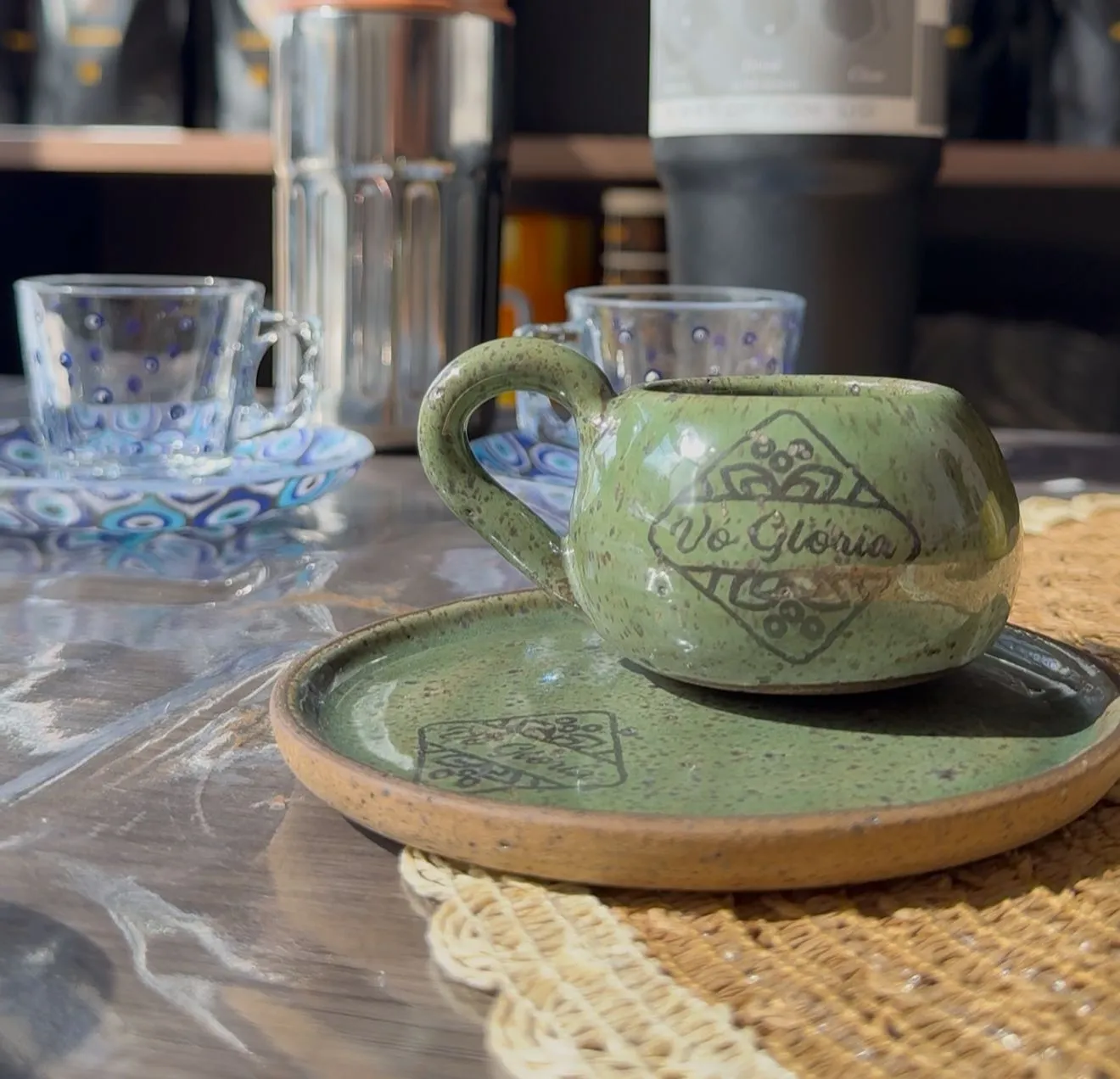 Xícara personalizada de Natal Vó Glória Coffees – Conjunto com Duas